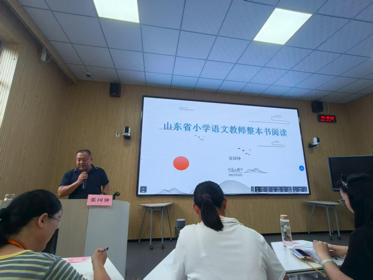 特邀专家潍坊中小学读写中心张国钟主任,为学员们作了《山东省小学语文教师整本书阅读》的报告。