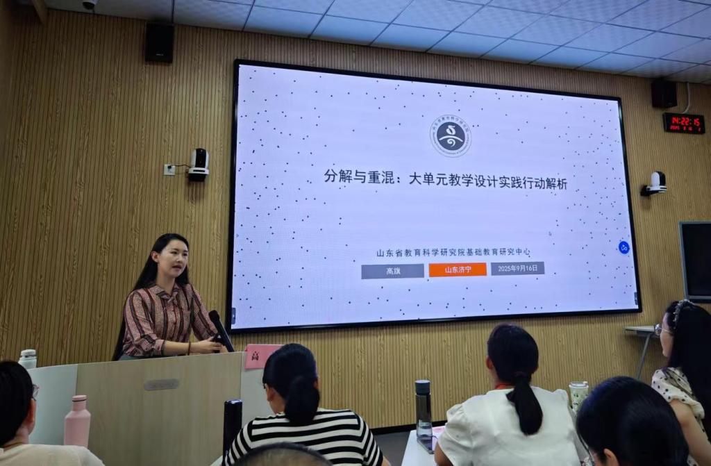 下午,山东省教科院小学语文教研员高旗老师以其富有创见的研究和扎实的实践案例,为我们带来了题为《分解与重混—大单元教学设计行动解析》的精彩报告。