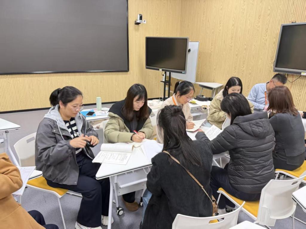 培训完后,教师们围坐在一起,分享当天的学习心得,结合自身教学经验交流感悟。大家纷纷表示,此次培训内容实用、针对性强,为今后的英语教学提供了新的思路和方法。整个教研过程专注而和谐,展现了教师们积极进取的精神风貌。