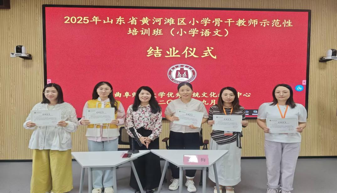 据悉,本次培训是山东省“黄河流域教育振兴计划”的重要举措,后续曲阜师范大学将通过“线上研修+跟岗指导”持续跟踪学员成长,构建“培训—实践—反思—提升”的闭环体系。正如袁梅在结业致辞中所言:“教育是点亮未来的火炬,愿各位老师以此次培训为起点,在黄河滩区的教育沃土上深耕细作,让文化传承与教育创新的种子生根发芽,结出丰硕果实。”