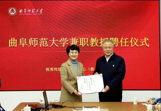 在兼职教授聘任仪式上,继续教育学院党总支书记茌淑君向董洪波颁发聘书。沈秀清在致辞中,对董洪波受聘为兼职教授表示祝贺,并对曲阜市政协一直以来给予我校的大力支持表达了感谢。同时,期望未来双方能搭建起文化研究与社会服务的桥梁,推动优秀传统文化教育成果更好地落地实施。