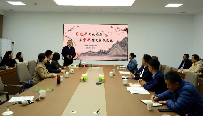 随后,董洪波以“习近平文化思想与中华优秀传统文化”为主题做了一场专场讲座。讲座内容不仅对相关理论进行了具有高度的系统阐释,还结合实践案例进行了生动解读,使大家对文化传承的时代价值有了更鲜活的认识与理解。