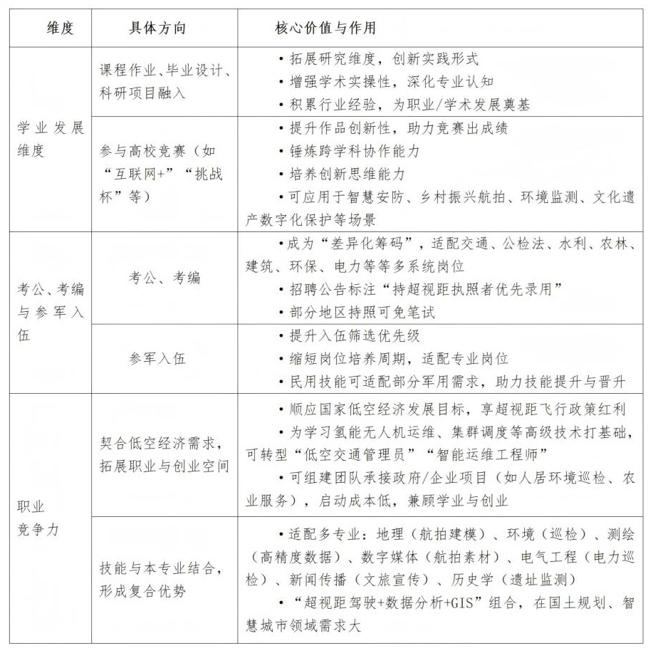 中国民用航空局(CAAC)无人机驾驶证是我国民用无人机操控的官方准入凭证,已纳入民航管理体系,在多个领域具备较高的认可度。随着无人机产业的发展,对持有该证书专业人才的需求与日俱增。为此,学校特引进专业培训体系,与相关机构联合组建师资队伍、制定教学方案,助力学生掌握专业技能、获取相关认证,进而提升其职业竞争力。